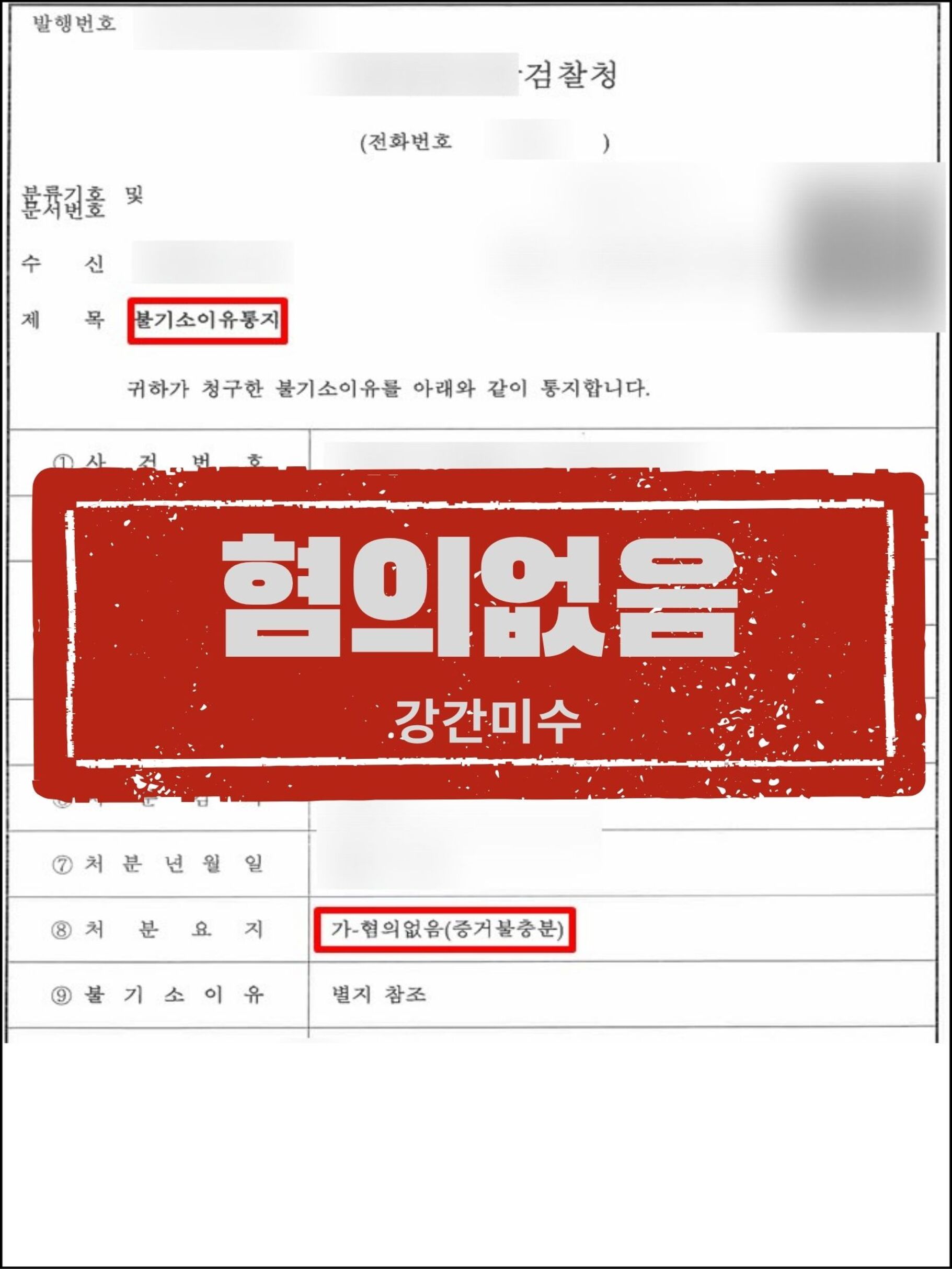 법률사무소 오율의 김혜진 변호사의 노력에 힘입어, 수사기관은 자료를 검토해본 바 증거 불충분 혐의없음 결정을 내리게 되었습니다.